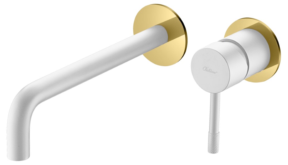 Смеситель для умывальника из стены, Uno. Белый Золото 465-WG