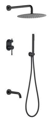 Смеситель встроенный + верхний+ ручной душ, Uno. Black 464-2-B